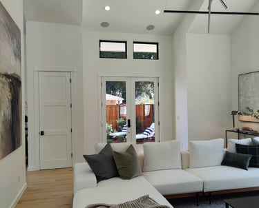 Atherton, Calfiornia: A transformational full home renovations both interior and exterior of residence. It consisted of corridors, amenity spaces, relocation of kitchen, laundry facilities, bathroom, living room, bathroom podium decking and landscaping and garage converted into habitable space.