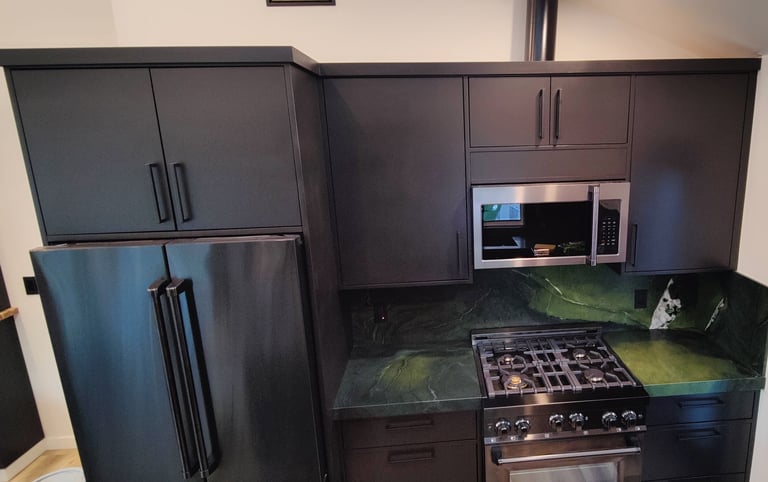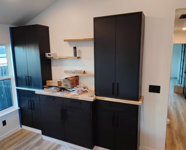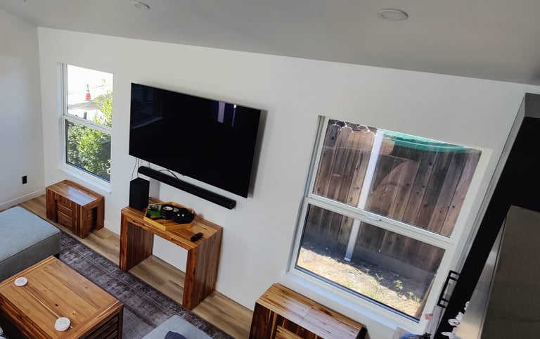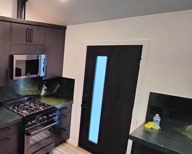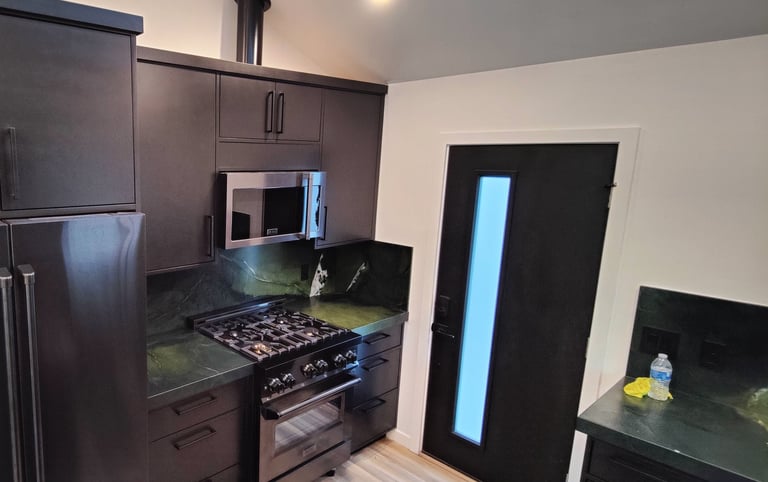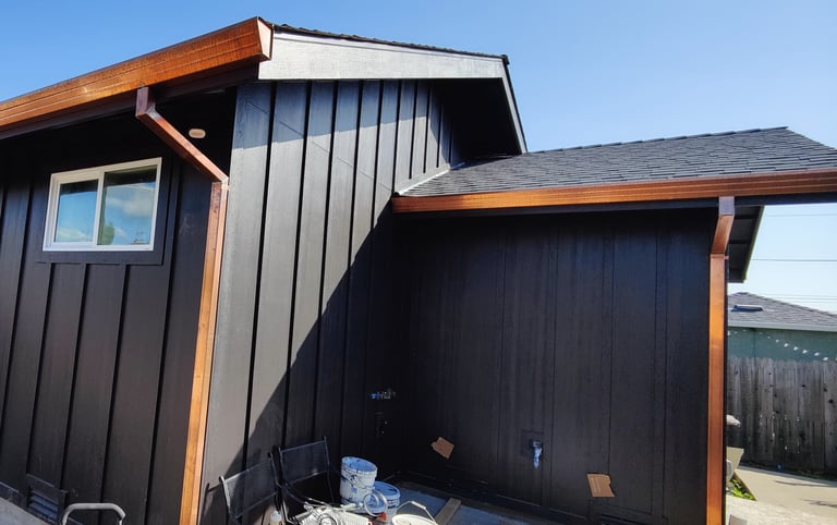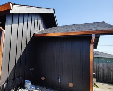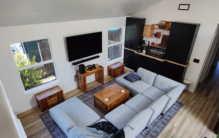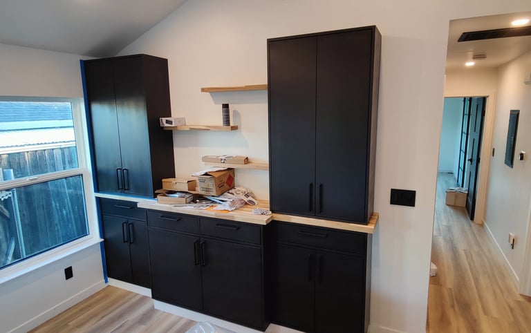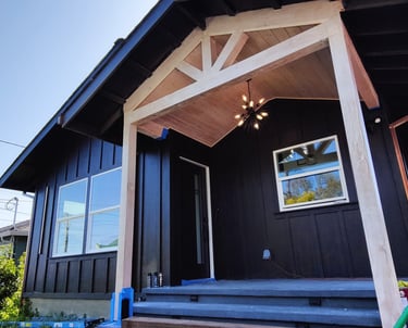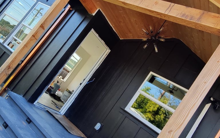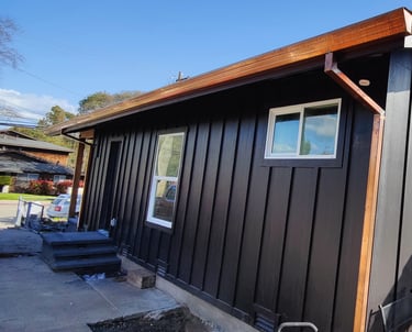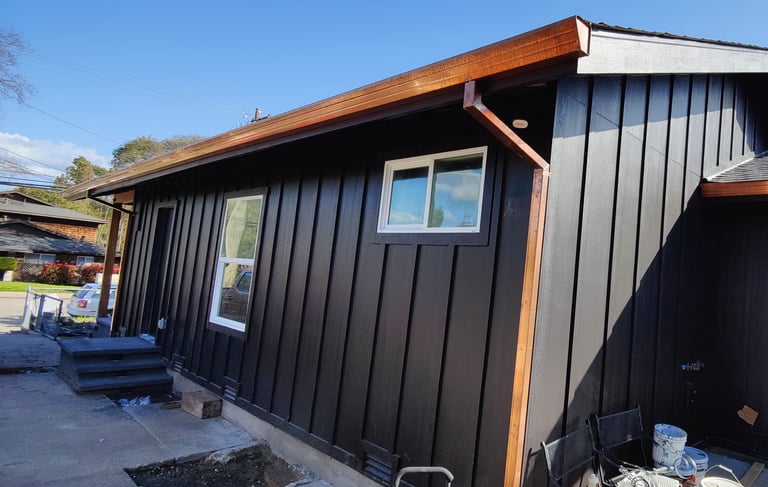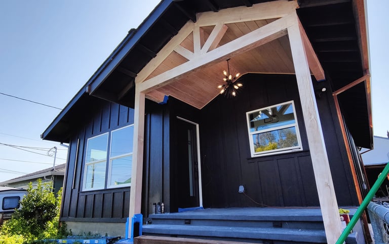 Castro Valley, California: Demolished an un-permitted shed and converted an existing detached garage to an accessory dwelling unit. The ADU has a bedroom, bath, laundry closet, and kitchen/living/dining room. Replaced the siding of the garage with Hardie board, mini-split and tankless water heater.