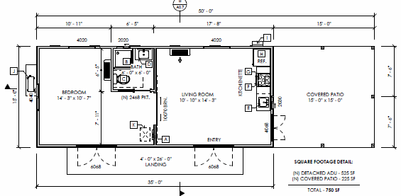 Pinole, California: This project proposes a new 525 SF detached ADU with an attached 225 SF covered patio, offering additional living space and outdoor comfort. The renovation also includes upgrading the main electrical panel to 200 AMP to support modern appliances and systems. The design combines functionality, convenience, and enhanced property value.